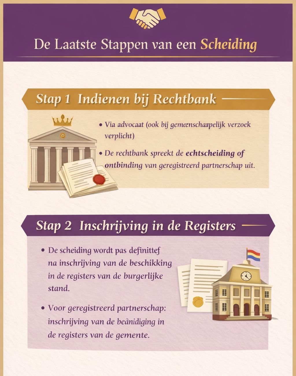 ◼het verloop van de scheidingsprocedure bij de rechtbank ingeval van echtscheiding, scheiding tafel en bed en ontbinding geregistreerd partnerschap en